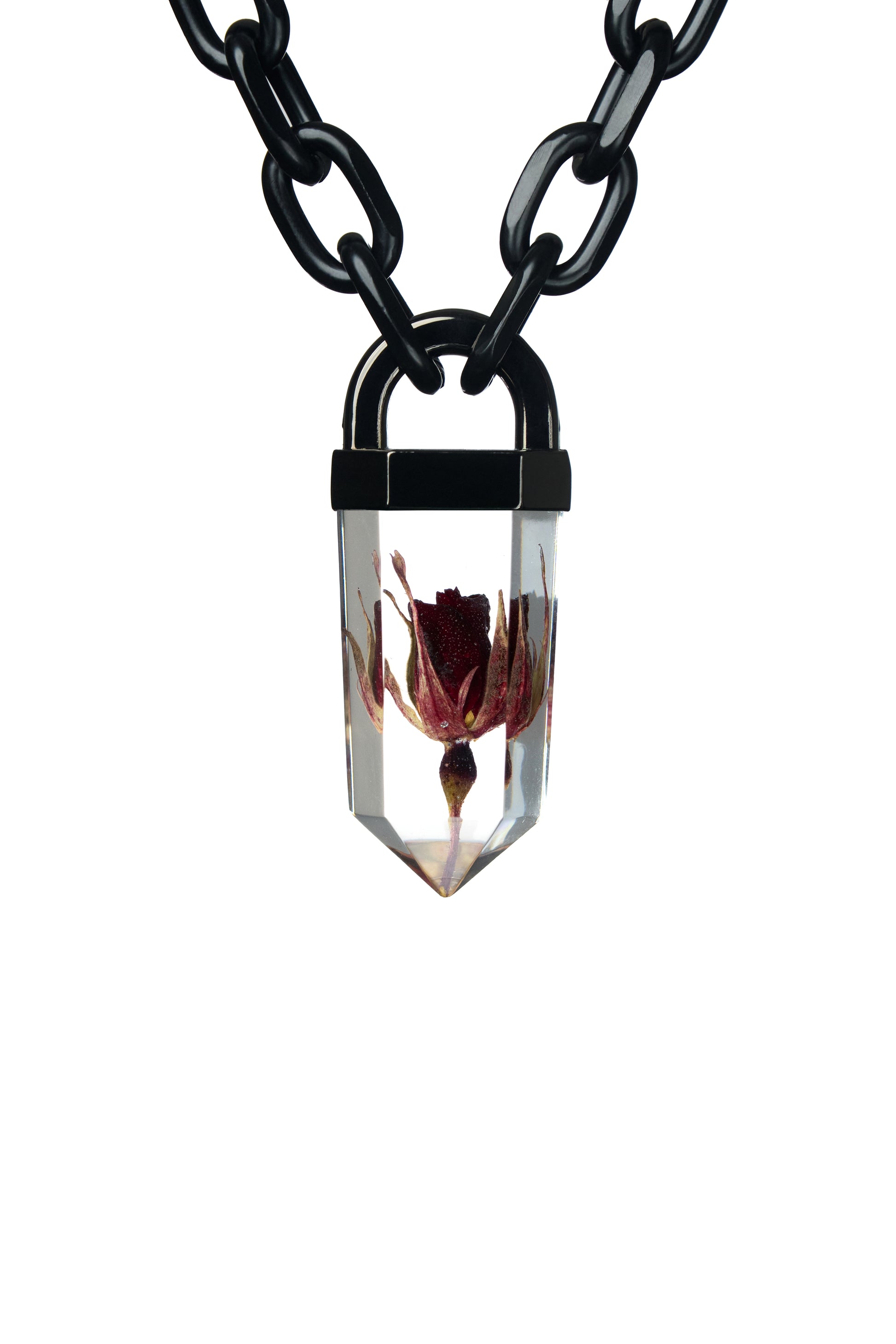 I have bought many necklaces now and love the uniqueness of each eden. The fact it looks like i have a mini garden with me grounds me every time and framed in black just makes it like a dark portrait. So special and meaningful. Truly a work of art.