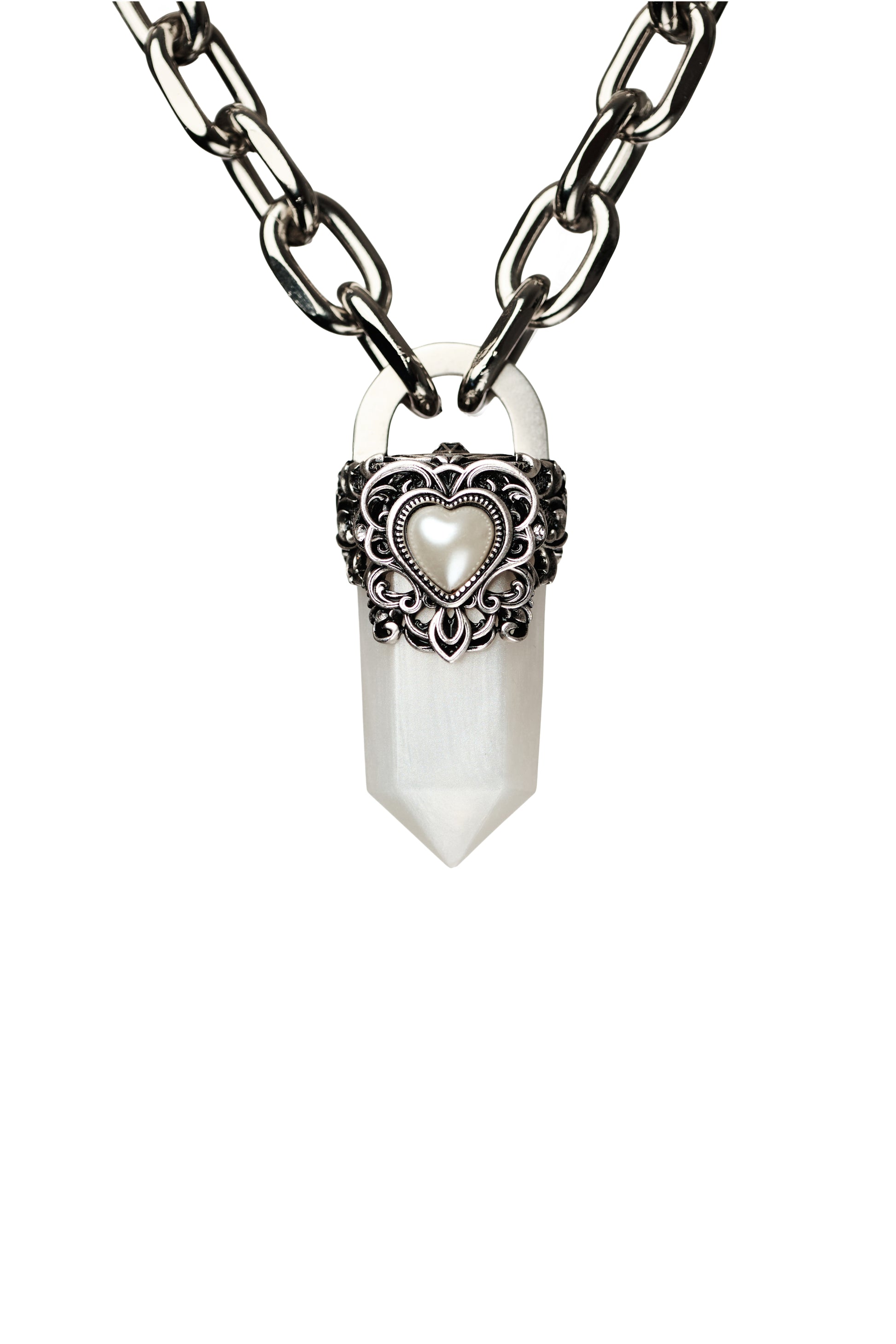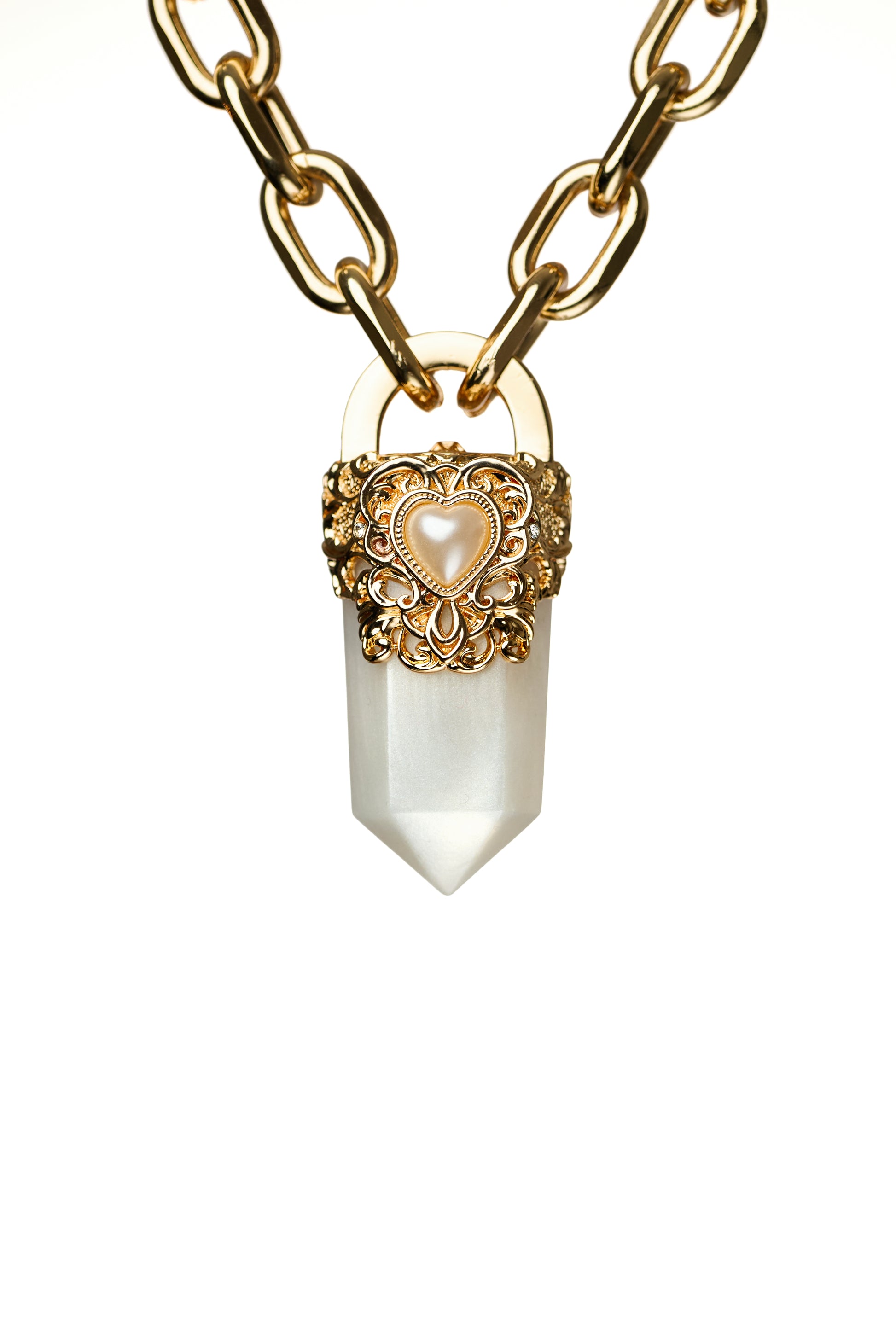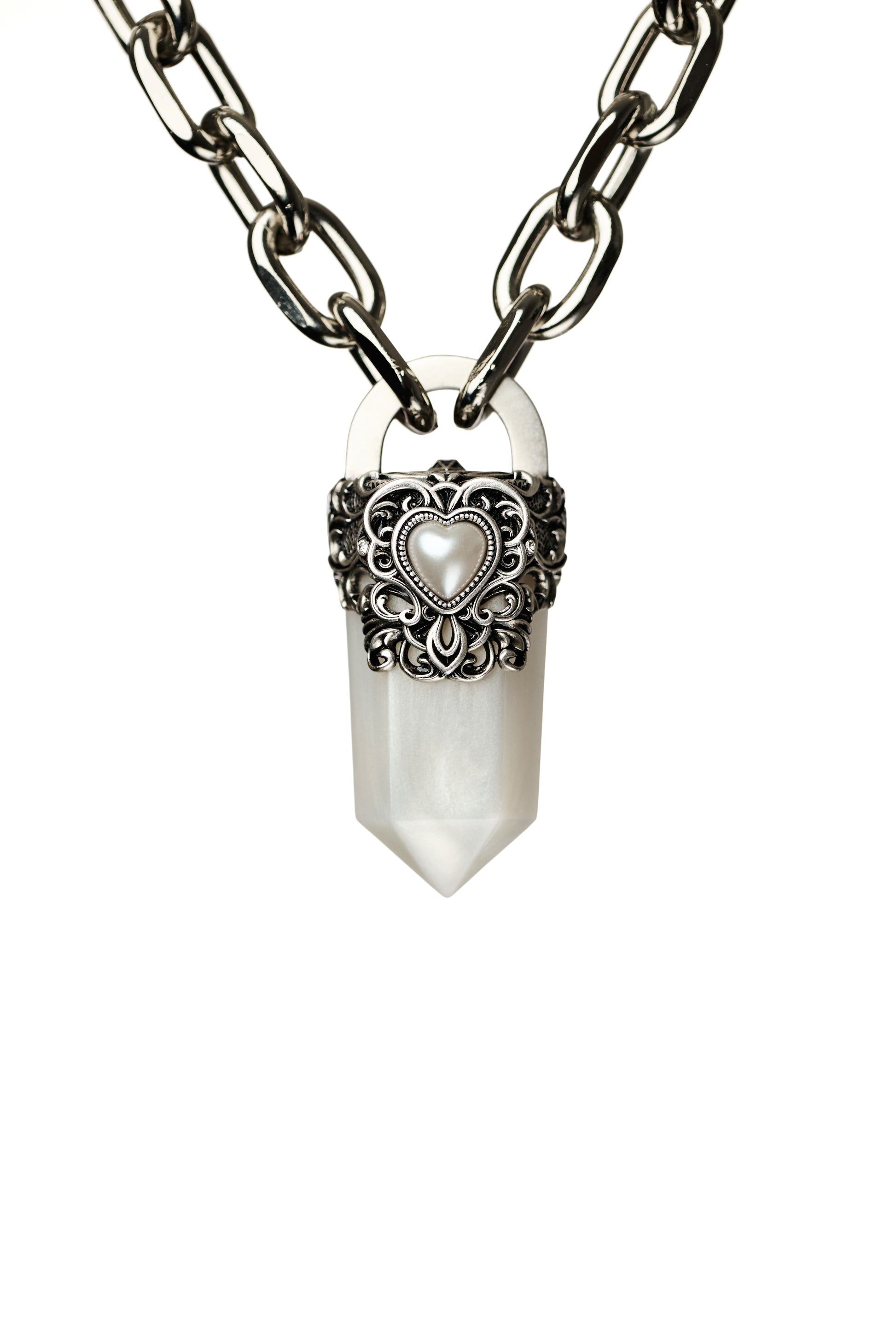 - Statement PEARL Heart- Ornate Topper- Statement Resin Crystal- Silver plated brass topper - 100% Metal Alloy Chain