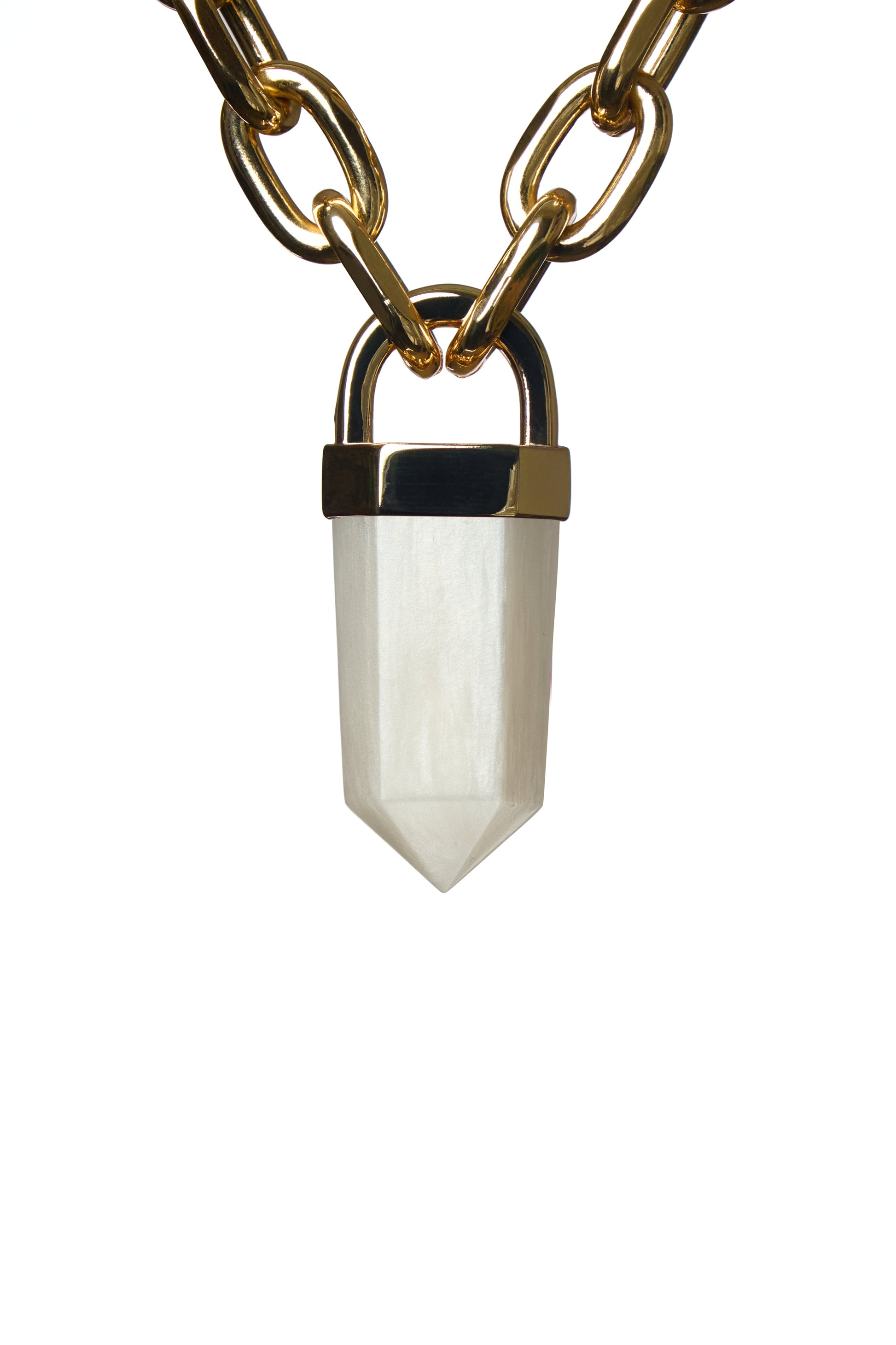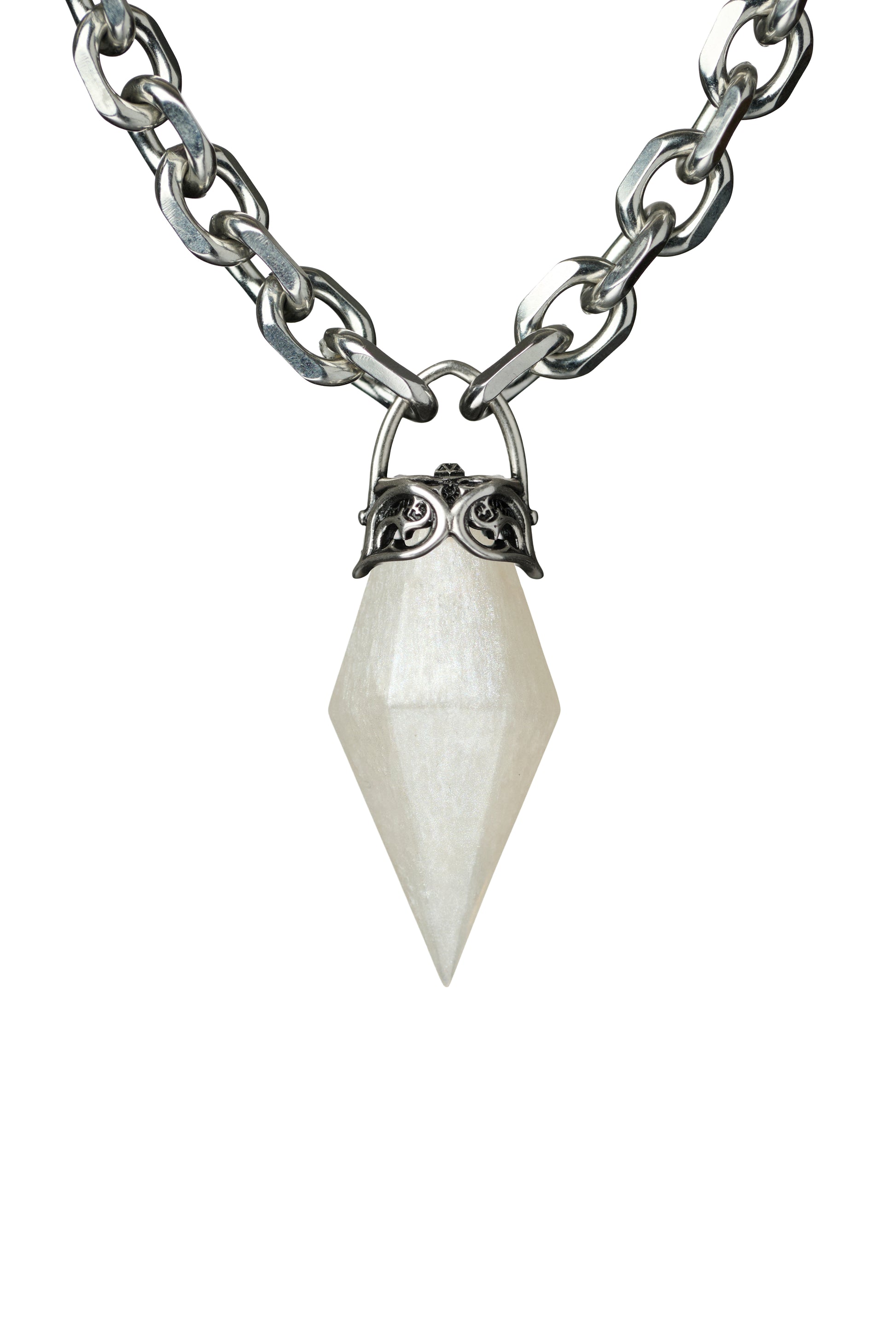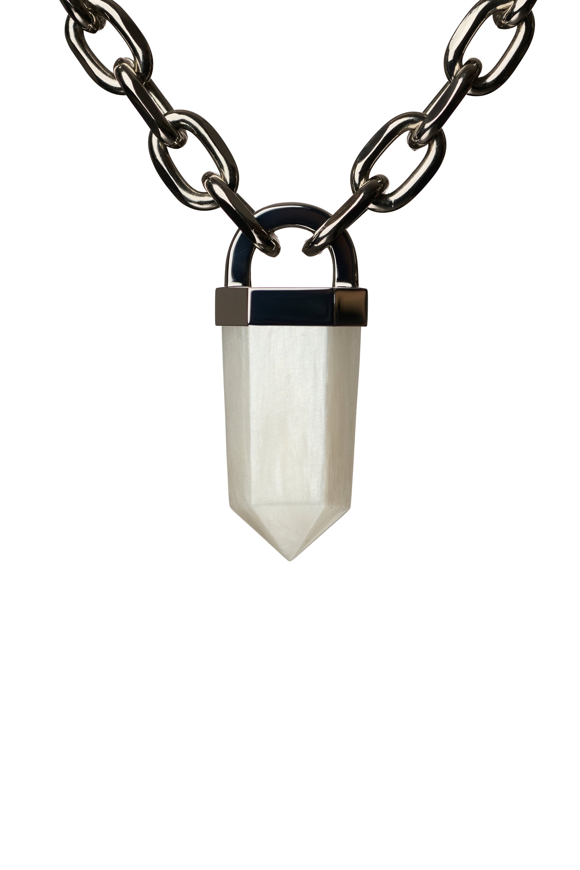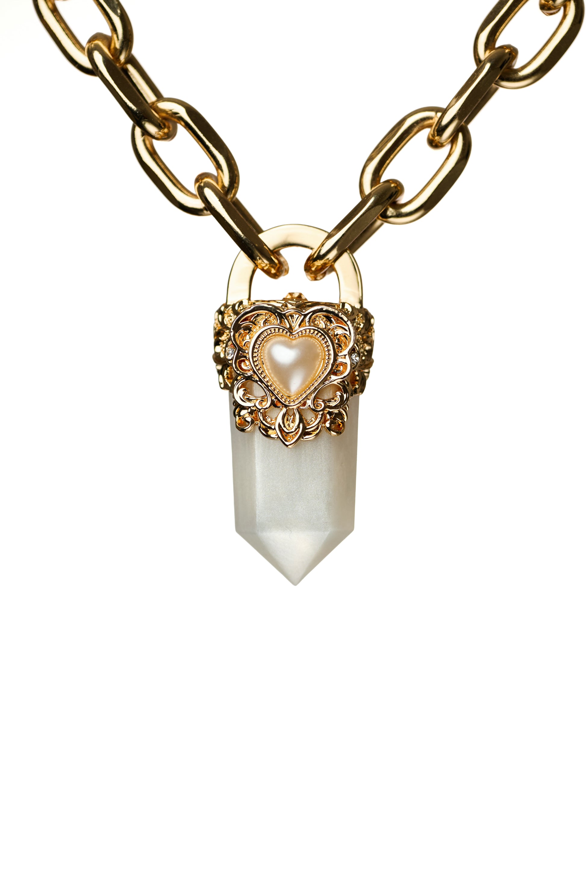 - Statement PEARL Heart- Ornate Topper- Statement Resin Crystal- Silver plated brass topper - 100% Metal Alloy Chain
